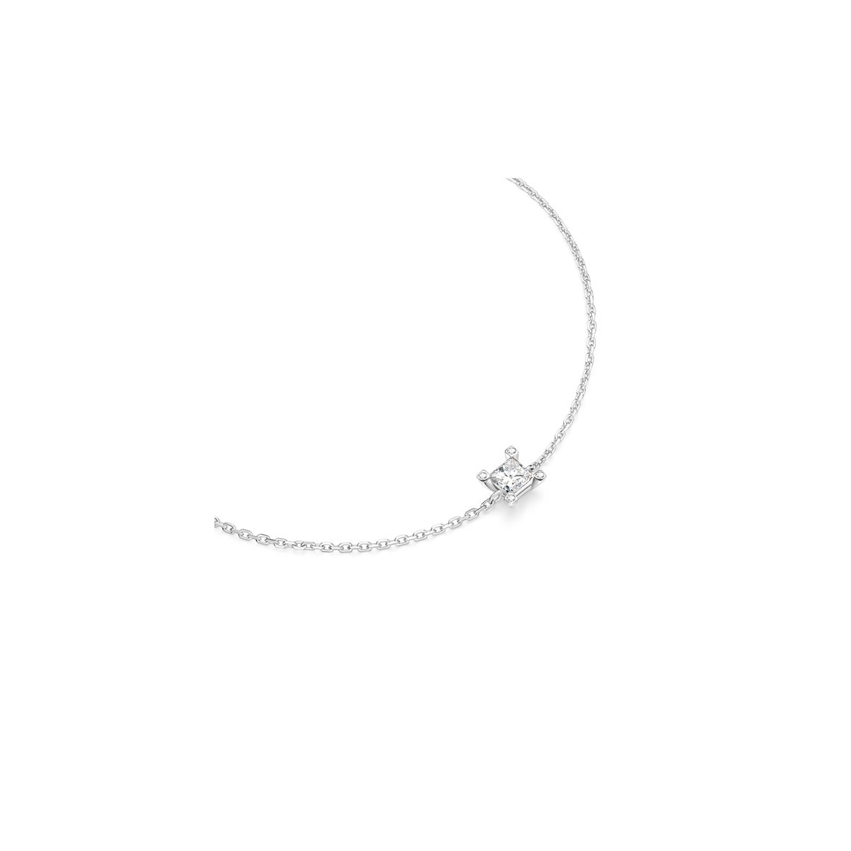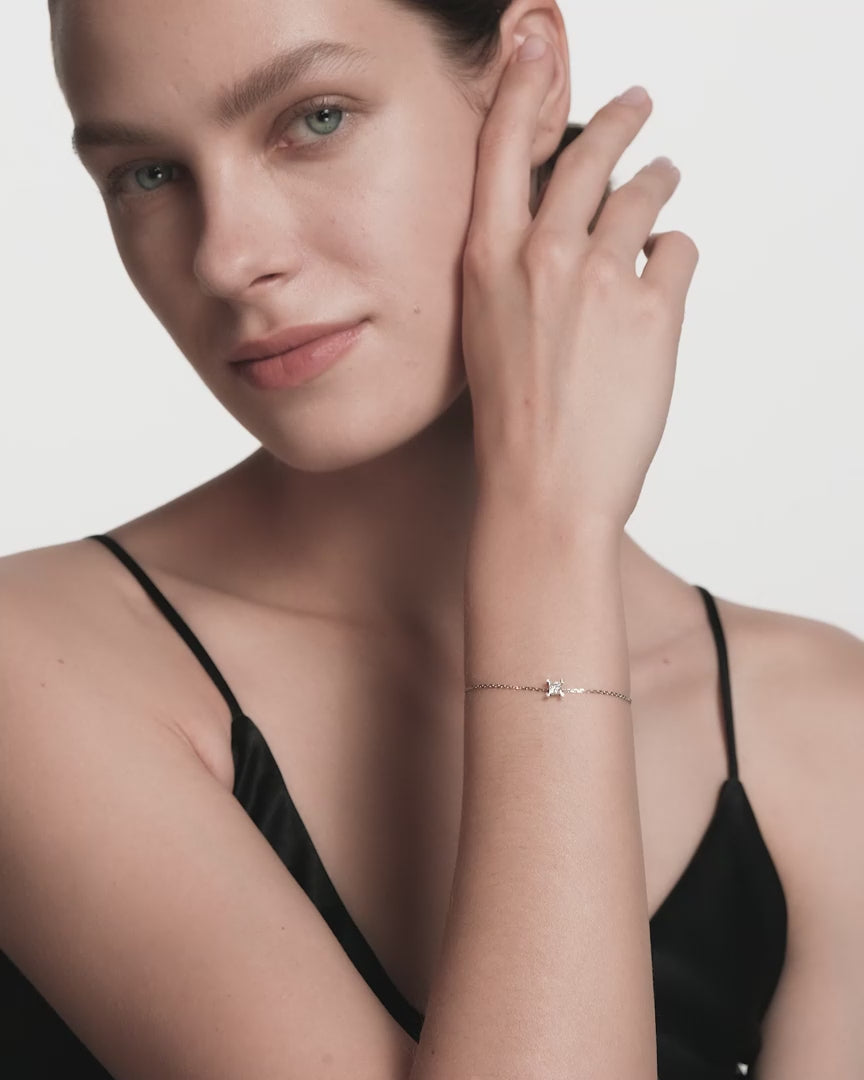 Created with meticulous attention to detail, the bracelet features a single 0.30ct princess-cut diamond at its heart. The size and sparkle of the central diamond is accentuated by the signature Criss Cross setting, elevated with accent diamonds in each claw. The Starlet Bracelet effortlessly transitions from everyday wear to evening chic with understated brilliance.