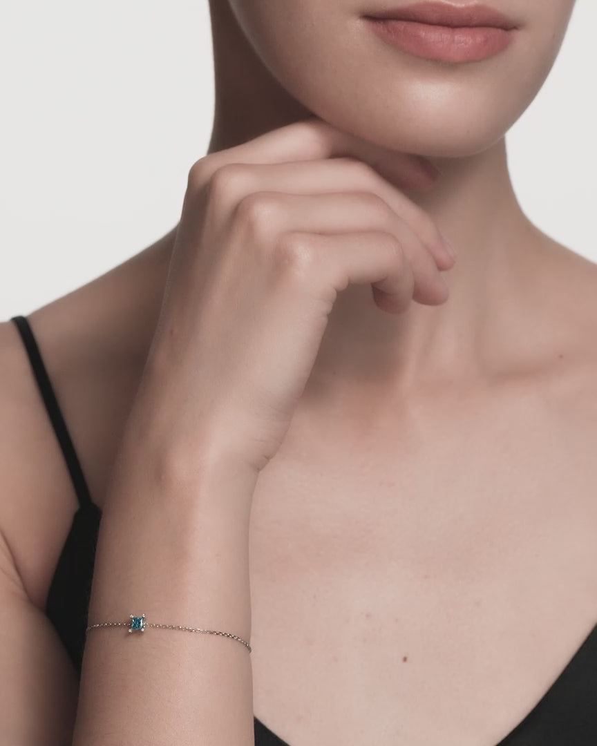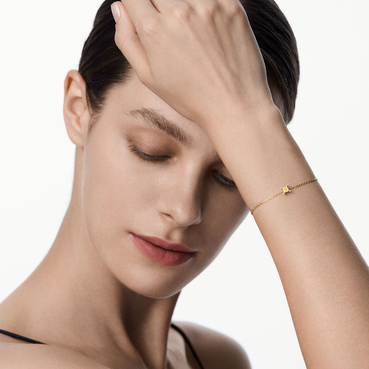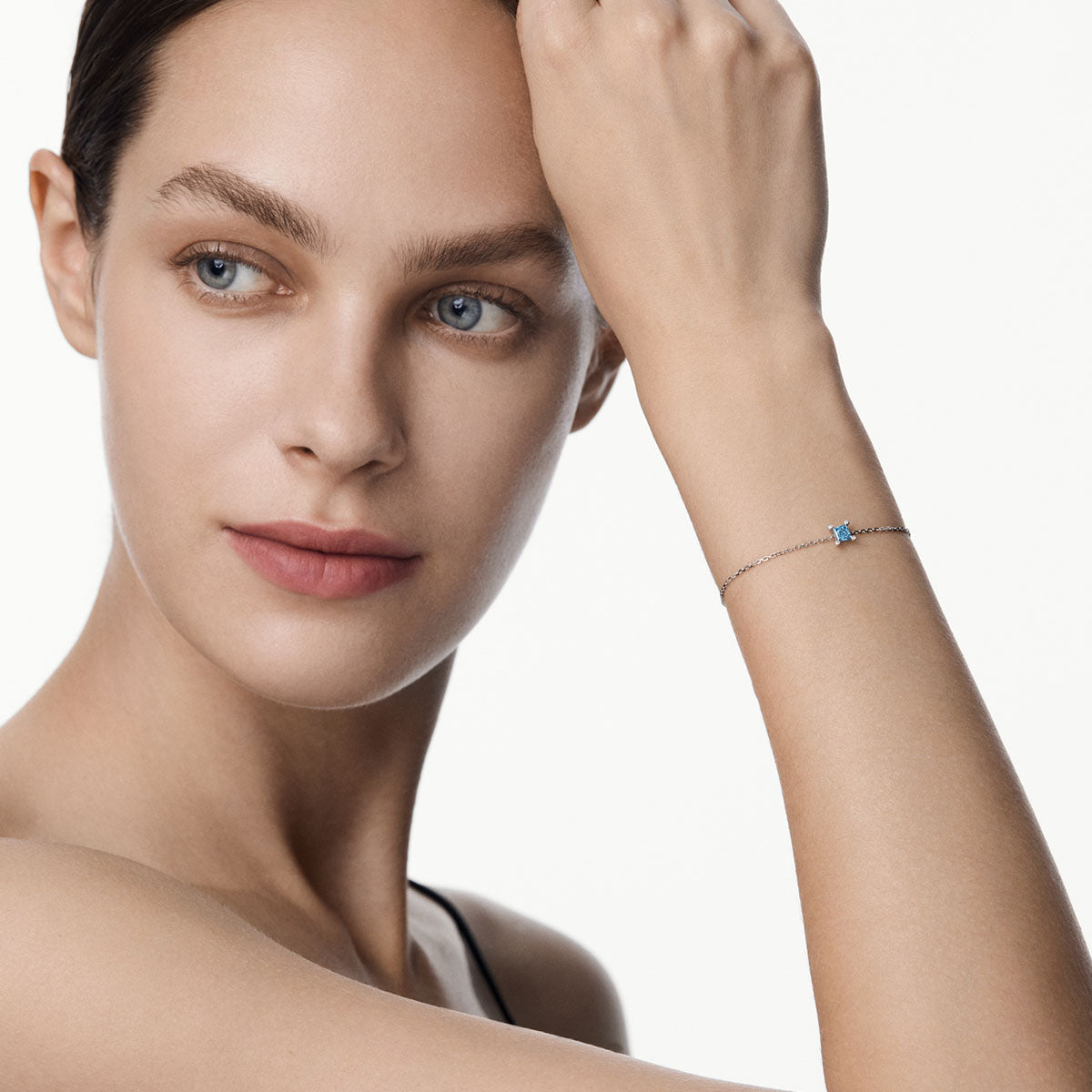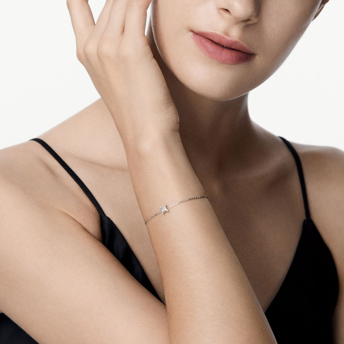 Created with meticulous attention to detail, the bracelet features a single 0.30ct princess-cut diamond at its heart. The size and sparkle of the central diamond is accentuated by the signature Criss Cross setting, elevated with accent diamonds in each claw. The Starlet Bracelet effortlessly transitions from everyday wear to evening chic with understated brilliance.